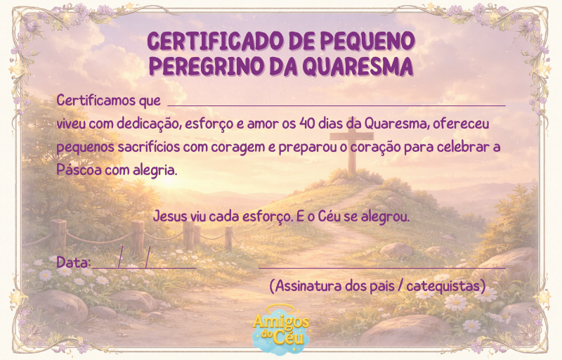 Este material foi desenvolvido no estilo do projeto Amigos do Céu — unindo beleza, profundidade e linguagem acessível — para que cada família possa preparar o coração para a Páscoa de maneira consciente e frutuosa.